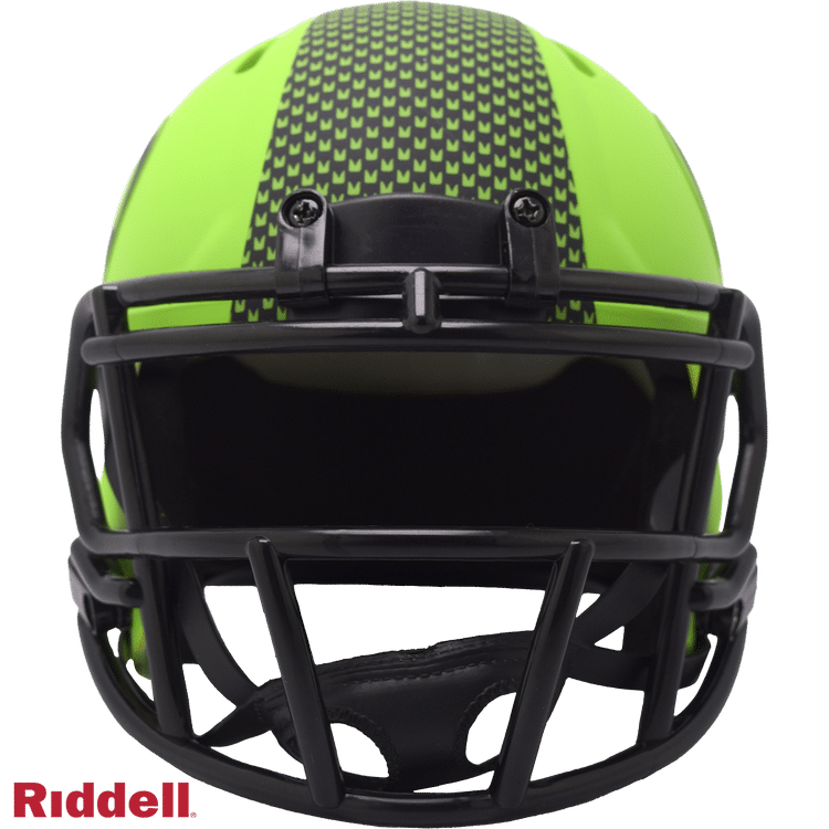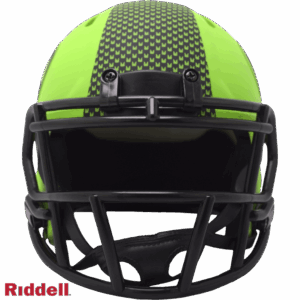 The Rave Collection puts a bright and colorful spin on NFL helmet design. Each helmet features brightly colored matte finish shells, matte one-color logo treatments matching the matte finish shell and all black parts (facemask, chinstrap, buckles, padding and bumpers). Made by Riddell.