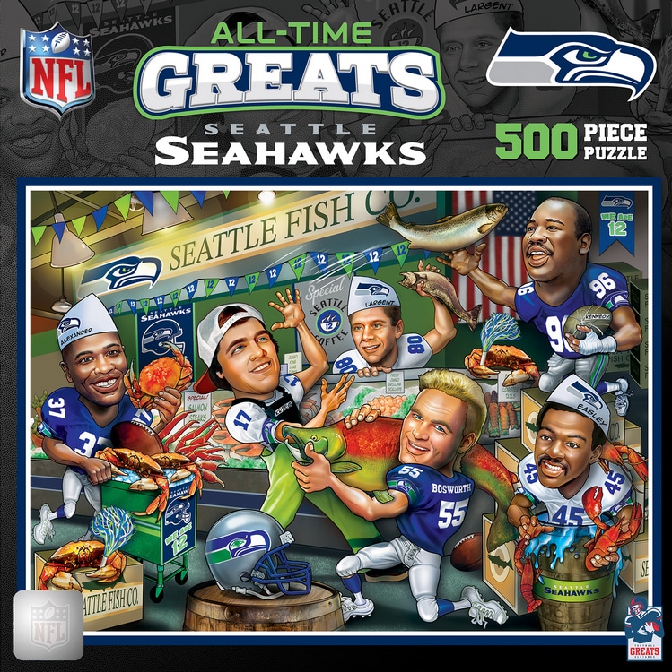 This 500 piece NFL puzzle measures approximately 15×21 inches and features some of the greatest NFL players to ever wear a uniform. The easily recognizable and fun caricatures are shown in an setting specific to the team name, city or history. To reduce its impact on our environment, the chipboard used in this puzzle is made of recycled material. Made by MasterPieces Puzzle.
