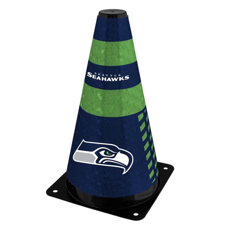 Set boundaries on the field or at your next tailgate. These multipurpose, lightweight and stackable cones come wrapped with reflective team color designs