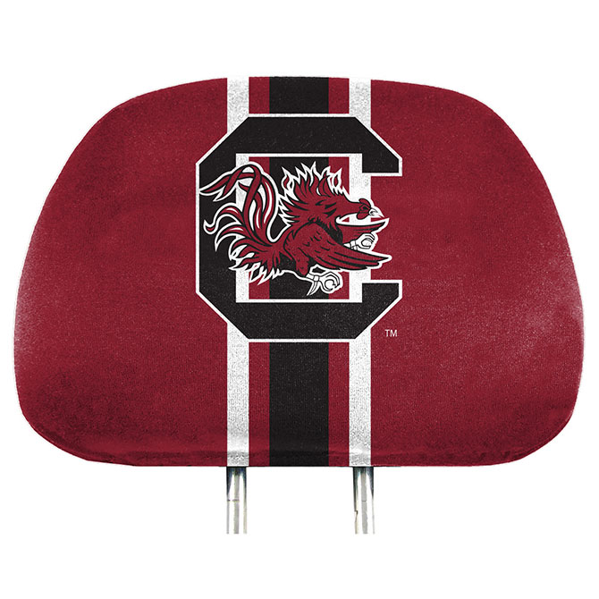 Full printed color cover with team logo. Elasticized bottom band fits any size headrest. Storage pocket on back. Includes two headrest covers. Made by Team