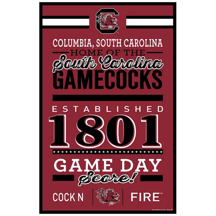 Sign measures 11×17 and is 1/4 inch thick. Decorated with the colors of your team with the established date. Made by Wincraft.