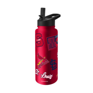 This durable 34 oz. Quencher Stainless Steel Bottle has a powder coat exterior and is made for all-day hydration. Double-walled and vacuum insulated, it features a no-spill, no-leak lid with a flip top spout and straw. The easy-carry handle makes for convenient sipping while on the go. Wide opening allows for easy fill. Keeps drinks cold for hours. Made of high quality stainless steel that does not change the taste of your beverage. Hand wash only. Made by Logo Brands.