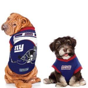 Your pet will go all-pro with the Performance Tee. This moisture-wicking polyester Tee-shirt sports a colorful back with team helmet graphics. The front and sleeves are team color. The stretch fabric makes it easy to pull on or off your pet. Stretch polyester knit. Full color print back, team wordmark on front. Contrast collar and sleeves. Woven jock tag. Made by Little Earth.