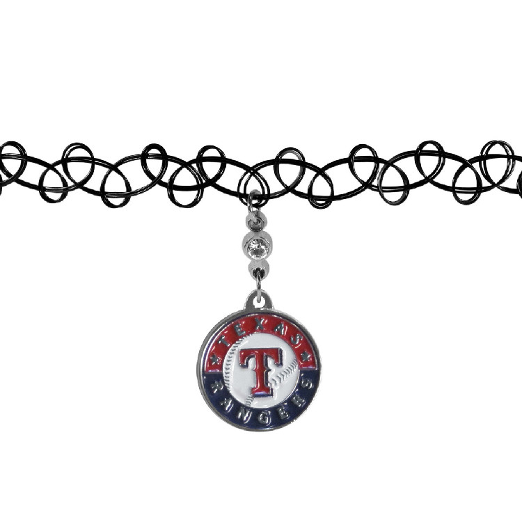 This retro, knotted choker is a cool and unique piece of fan jewelry. The tattoo style choker features a high polish team charm with rhinestone accents. Made by Siskiyou.