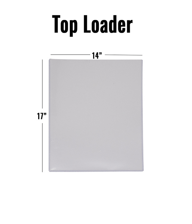 14″ x 17″ top loader. Keeps cards, photos, magazines and other collectibles clean, recyclable. Packs of 10. Made by Ultra Pro.