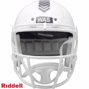 The Salute to Service helmets are inspired by those used by the military for decades, and are meant to honor the memory and selfless sacrifices of service members past and present. Each helmet features team logos, a chevron top stripe pattern, a stencil city name on front bumper, stencil Salute to Service back bumper, US Flag and official Sature to Service Ribbon. Made by Riddell.