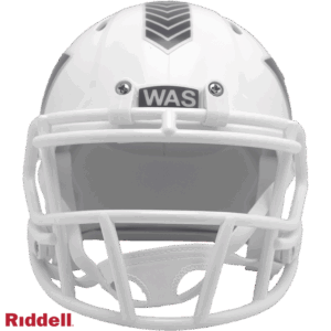 The Salute to Service helmets are inspired by those used by the military for decades, and are meant to honor the memory and selfless sacrifices of service members past and present. Each helmet features team logos, a chevron top stripe pattern, a stencil city name on front bumper, stencil Salute to Service back bumper, US Flag and official Sature to Service Ribbon. Made by Riddell.