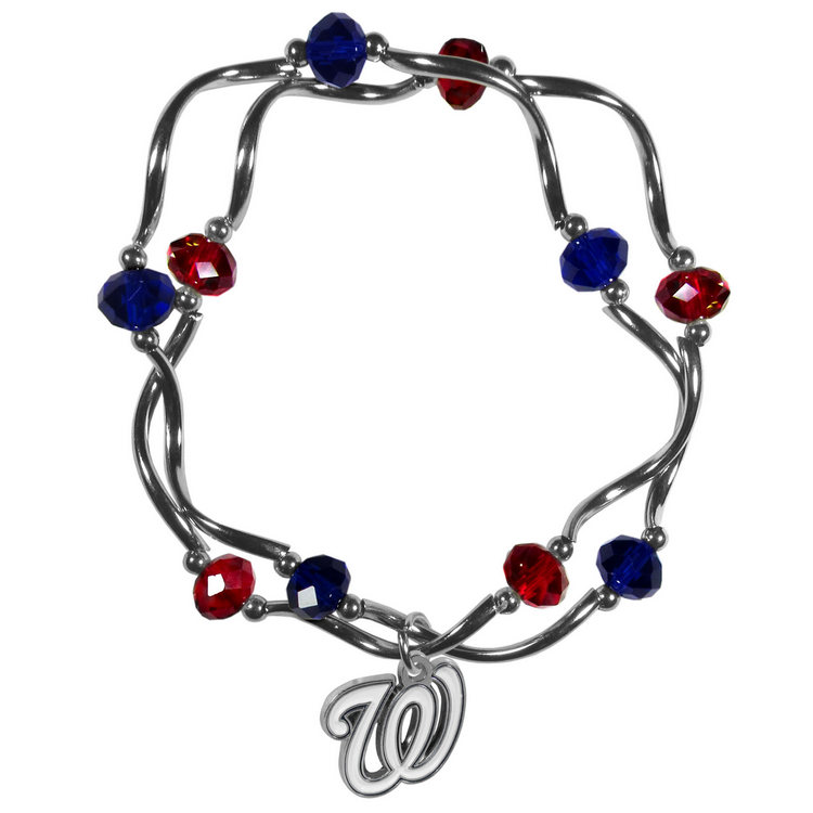 This delicate bead bracelet has eye-catching team colored beads that are strung on 2 Stretch cords that provide a comfortable and easy fit. The crystals are separated by beautiful Helix beads in high polish chrome for a truly designer inspired look. The 2 strands of beads intertwine for a fun and stylish bracelet. This chic accessory is finished off with a team charm that has expertly carved detail and an enameled color finish. A contemporary look to thrill any female sports fan. Whether this a gift for yourself or someone special you cannot miss with this trend-setting fashion bracelet. Made by Siskiyou.